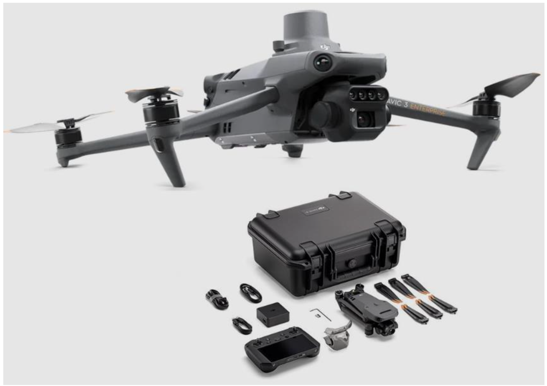 - 1x Dronă DJI Mavic 3 Multispectral (baterie inteligentă, modul RTK și microSD card instalat).
