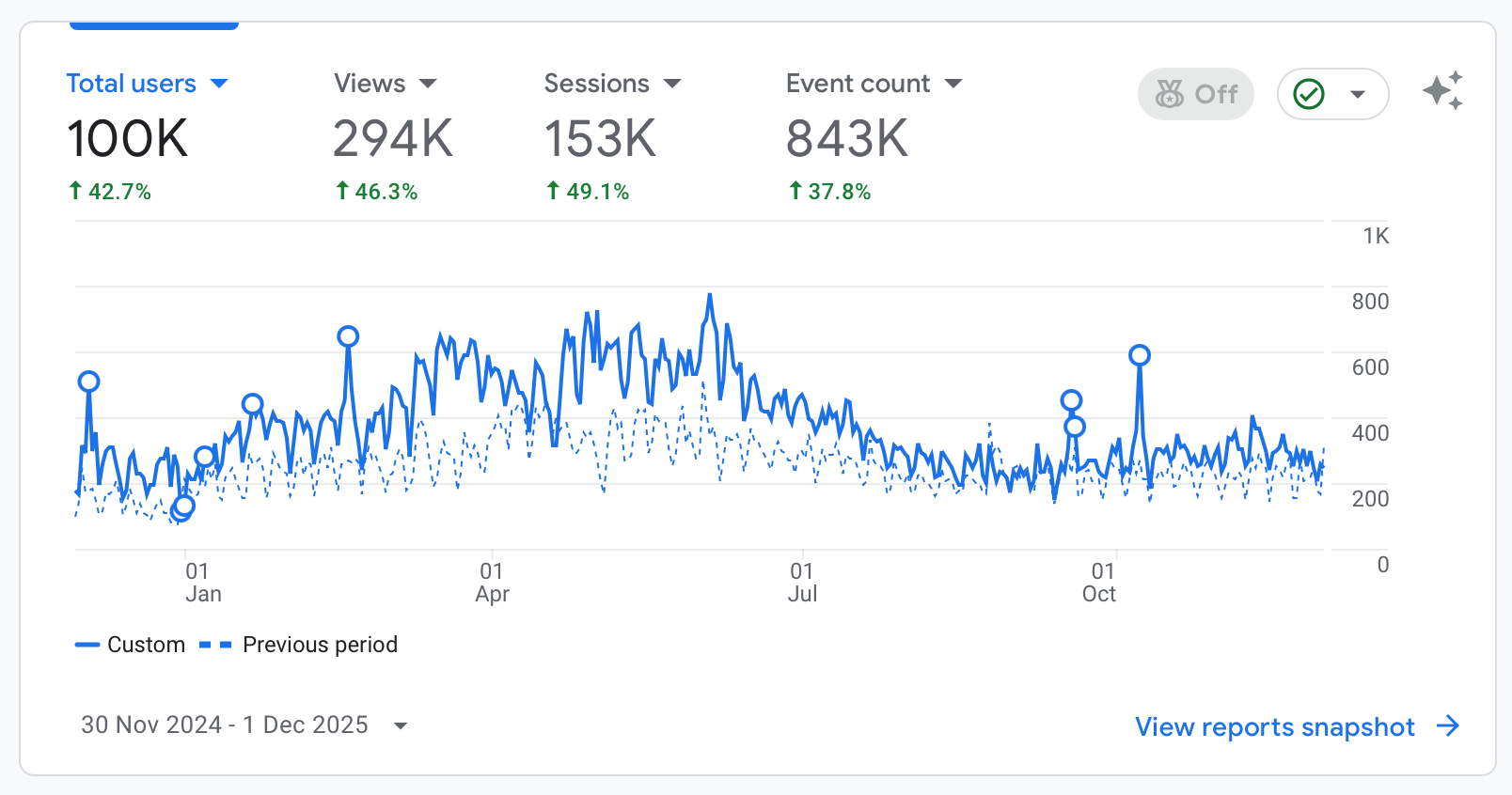 În perioada decembrie 2024 – decembrie 2025, platforma a fost vizitată de 100.000 de utilizatori unici, generând aproximativ 294.000 de vizualizări de pagină și peste 843.000 de interacțiuni ale utilizatorilor – de la clickuri și căutări, până la deschiderea categoriilor și produselor.