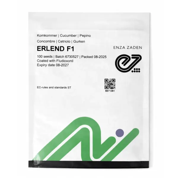 Erlend F1 (Enza Zaden) este un hibrid de castravete partenocarpic, foarte timpuriu – semitimpuriu, destinat cultivării în spații protejate (sere și solarii). Se remarcă prin productivitate ridicată, port compact și formare multiplă de fructe pe nod (2–4 fructe).