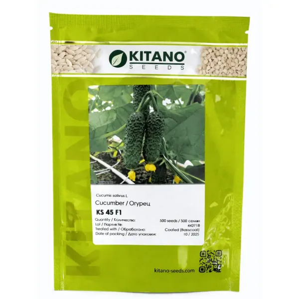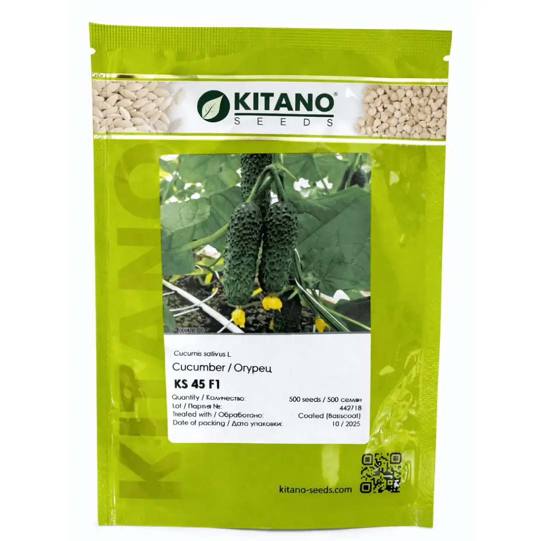 KS 45 F1 este un hibrid timpuriu de castravete, partenocarpic, destinat cultivării în sere de plastic, în ciclul I și II de cultură. Planta este de tip vegetativ-generativ, echilibrată, cu internoduri scurte și sistem radicular puternic, asigurând potențial ridicat de producție.