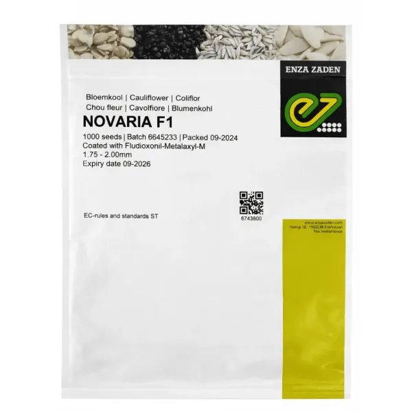 Novaria F1 (Enza Zaden) este un hibrid de conopidă semitimpurie, cu productivitate ridicată, creat special pentru cultivare în câmp deschis în sezonul de vară și toamnă, inclusiv în condiții de temperaturi foarte ridicate. Hibridul se remarcă prin stabilitate excelentă în condiții de stres și calitate constantă a producției.