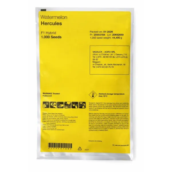 Hercules F1 este un hibrid de pepene verde cu maturare timpurie, destinat cultivării în câmp deschis, cu fructe mari (8–10 kg) și calitate comercială superioară.