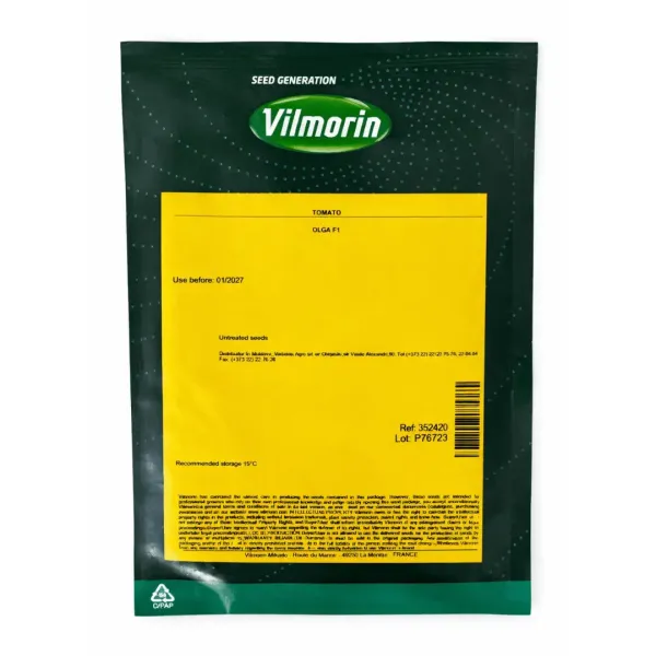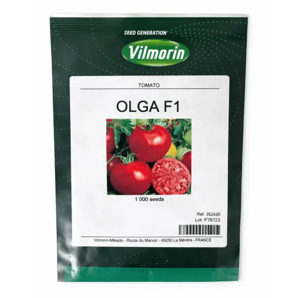 Olga F1 (Vilmorin) este un hibrid de tomate foarte timpurii, cu creștere determinată (poate fi condus și ca semi-determinată), creat pentru obținerea recoltelor extratimpurii și stabile. Este recomandat pentru cultivare atât în spații protejate slab încălzite, cât și în câmp deschis, fiind o alegere sigură pentru ciclurile timpurii de producție.