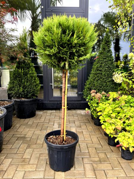 Cupressocyparis Leylandii glob pe picior este un conifer cu creștere rapidă, cu o formă deosebită a coroanei, globulară, ce crește pe un trunchi, este folosit în mare parte pentru decorul grădinilor și spațiilor. Este foarte apreciat nu doar pentru viteza de creștere, cât și pentru faptul că își păstrează culorile în timpul iernii, dar și pentru forma sa excepțională și unică.