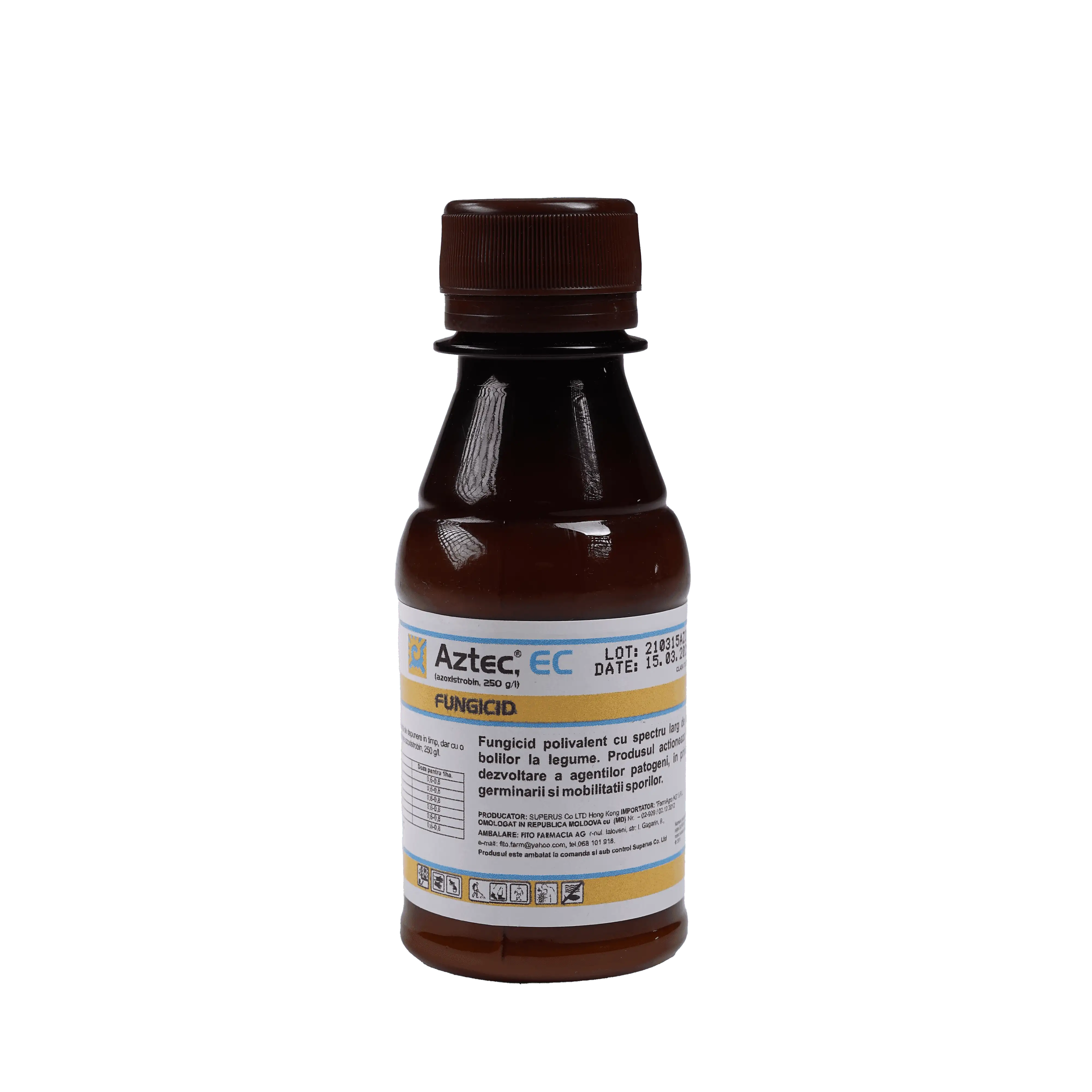 Aztec EC este un fungicid sistemic din grupa strobiluronilor pentru protecția culturilor legumicole în teren deschis și protejat (rosii, castraveți), precum și a viței de vie de la boli majore precum mucegaiul adevărat și pufosul, mucegaiul târziu, mucegaiul și oidiu.