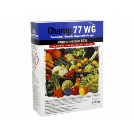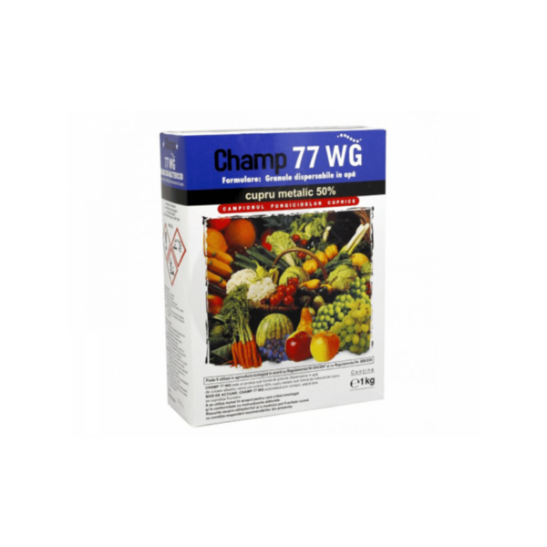 Champ 77 WG este un fungicid care se prezintă sub formă de granule de culoare albastră, dispersabile în apă, cu un conținut de 770 g/kg hidroxid de cupru.