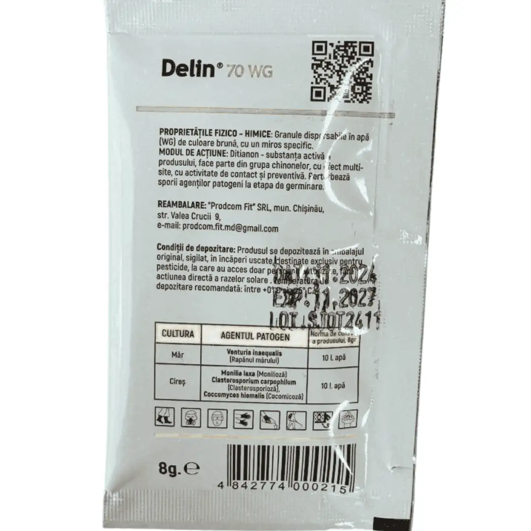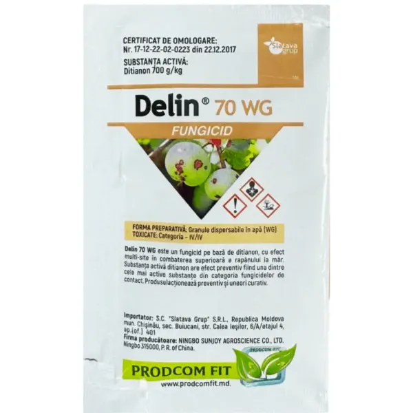 Delin 70 WG este fungicid cu acțiune de contact și preventivă. Perturbează sporii agenților patogeni la etapa de germinare.