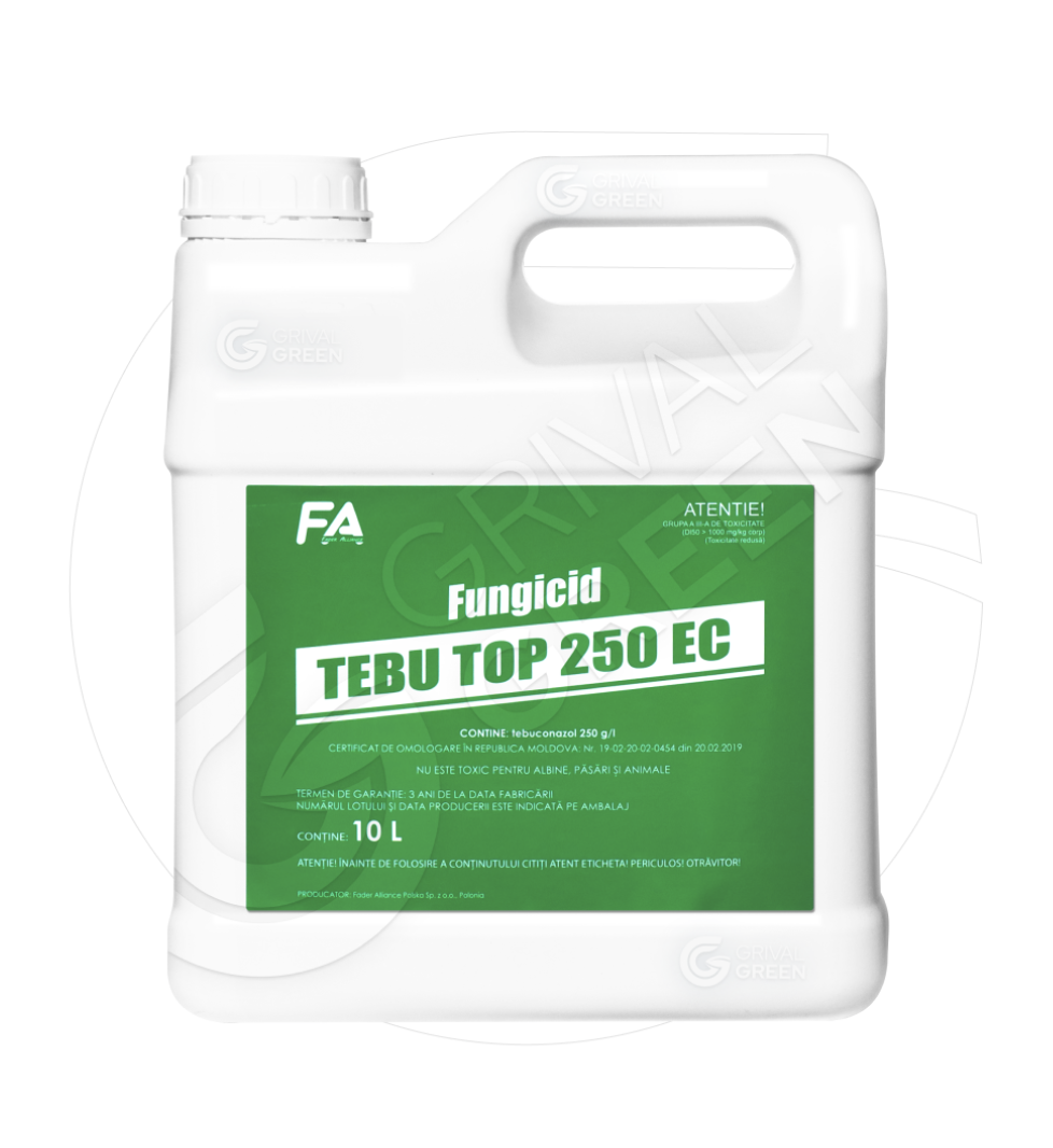 În timpul preparării soluției de lucru Tebu Top 250 EC trebuie adăugat în apă — și nu invers — direct în rezervorul de pulverizare, umplut pe jumătate cu apă.
