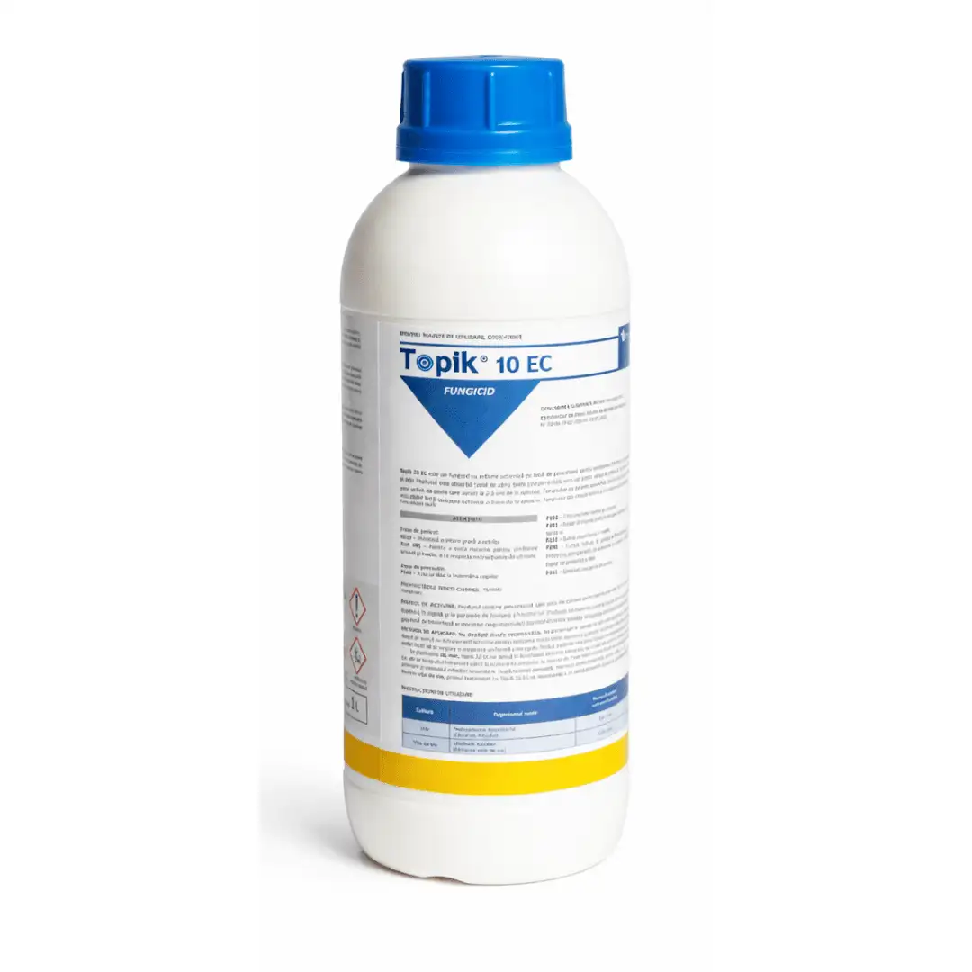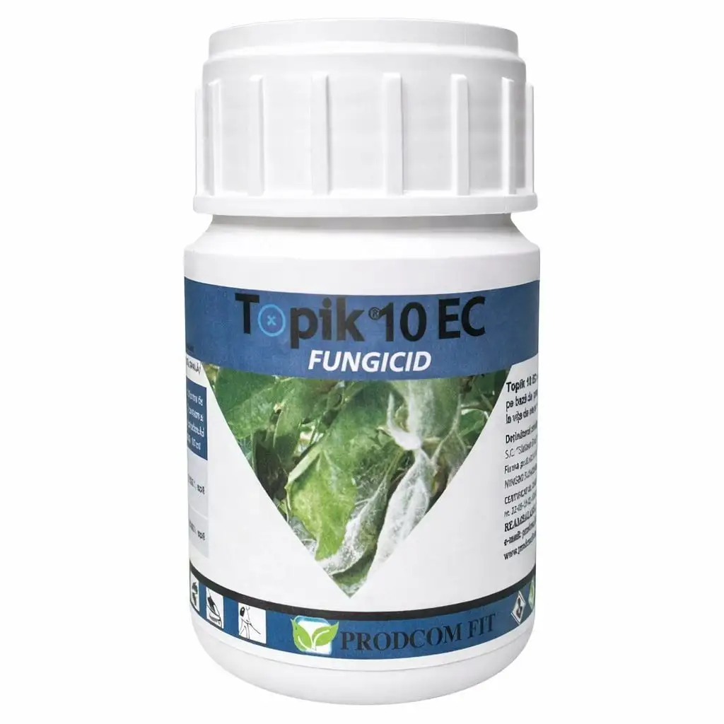 Topik 10 EC este un fungicid cu acțiune sistemică pe bază de penconazol, care acționează împotriva ciupercilor în momentul penetrării acestora în plantă și în perioada de formare a haustorilor.