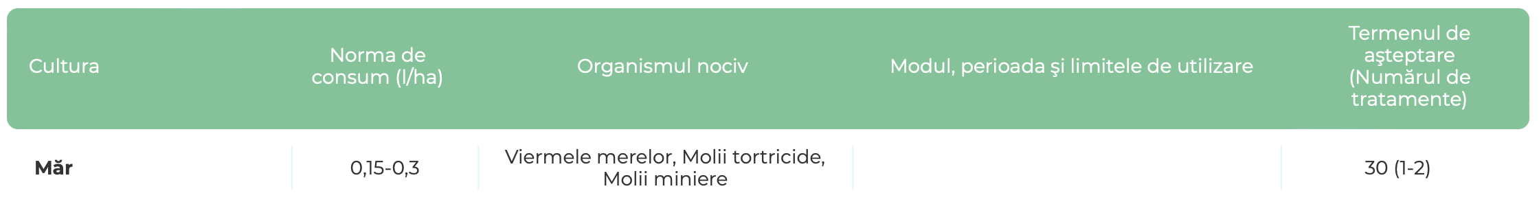 • Efect rapid, de șoc și control de lungă durată a lepidopterelor.