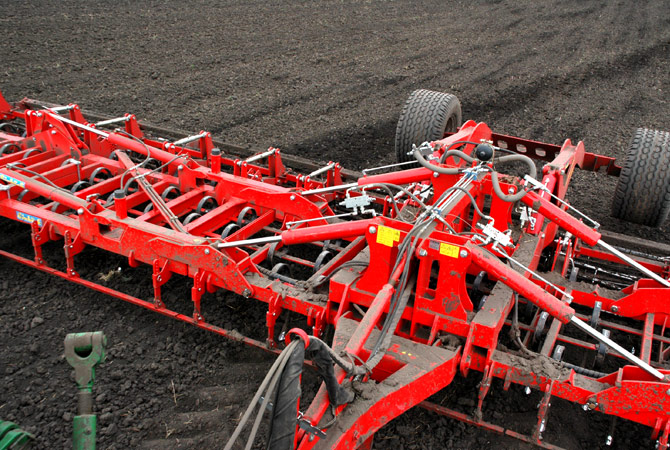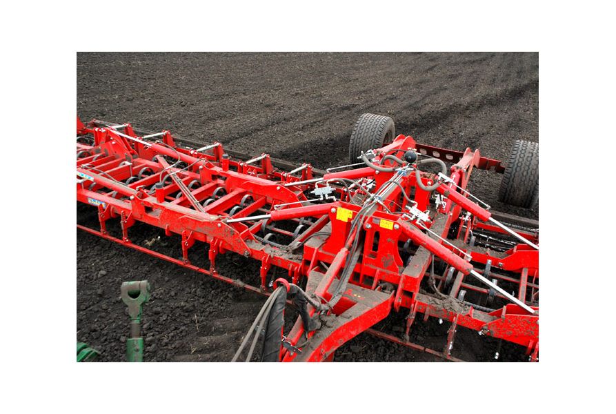 - Adâncimea cursei este reglată prin fixarea șurubului în găuri paralele cu solul. Panta superioară centrală controlează presiunea de lucru diferită pentru rolele individuale, ceea ce asigură o mai bună prăbușire și rulare a solului.