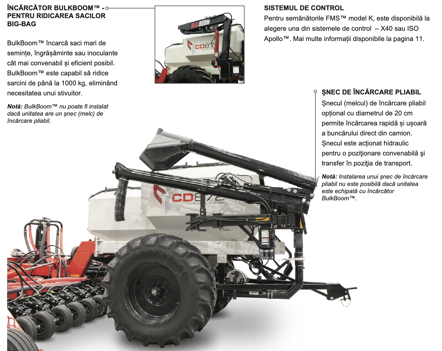 - Posibilitatea dotării cu încărcător de tip șnec sau de tip macara - BulkBoom, pentru încărcarea buncărului.