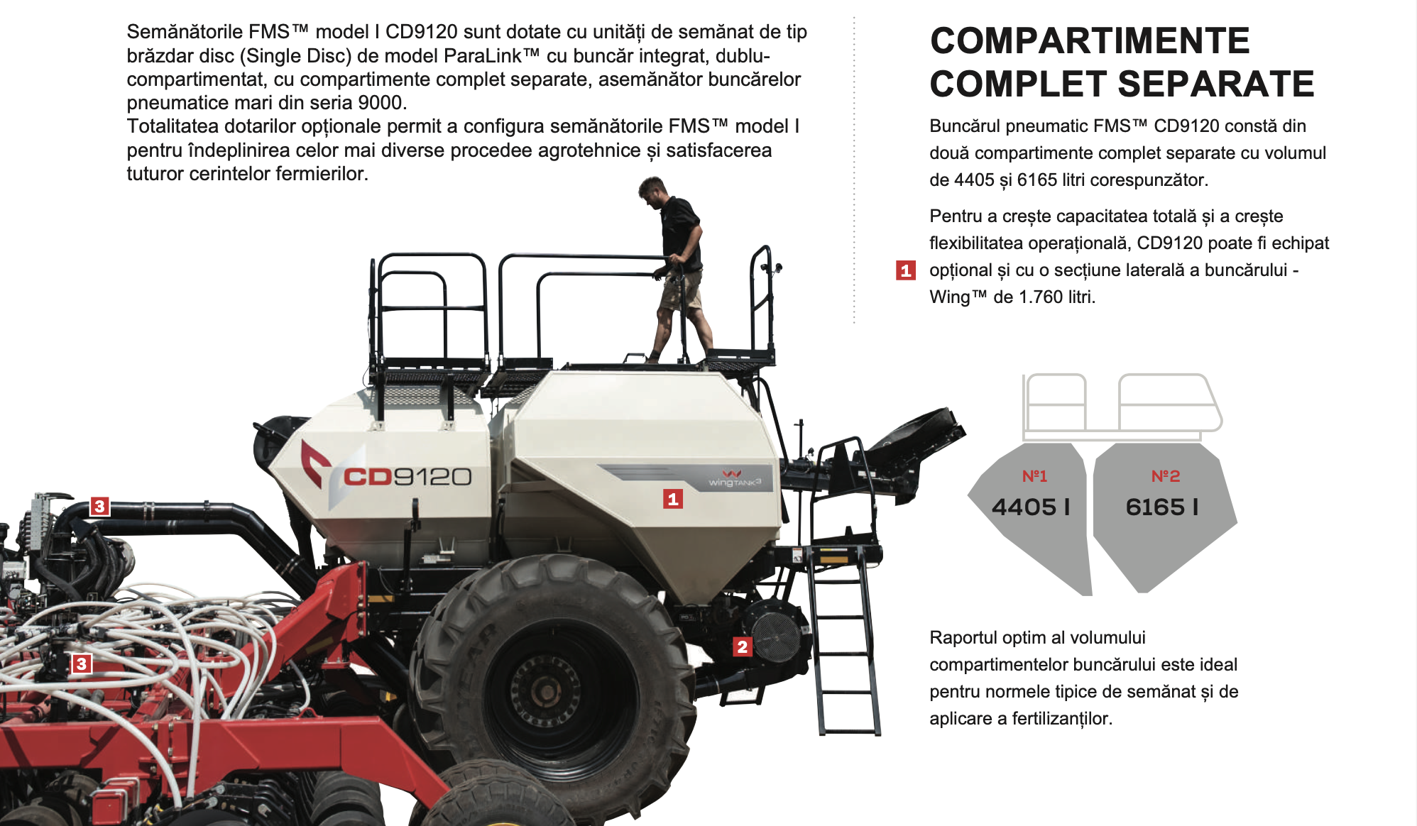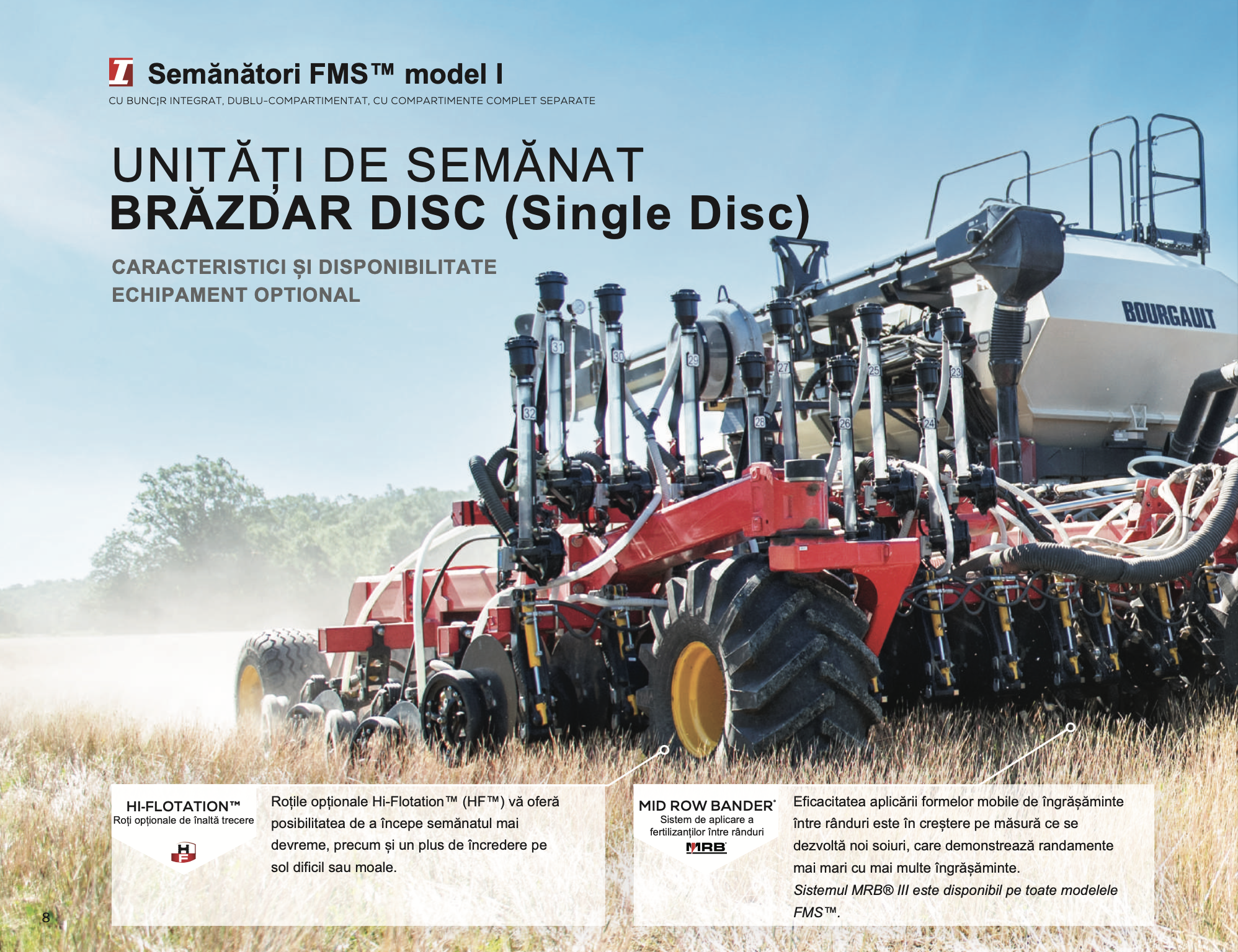 Semănătorile FMS model I sunt dotate cu unități de semănat de tip brăzdar disc (Single Disс) de model ParaLinkTM cu buncăr integrat, dublu-compartimentat, cu compartimente complet separate, asemănător buncărelor pneumatice mari din seria 9000.