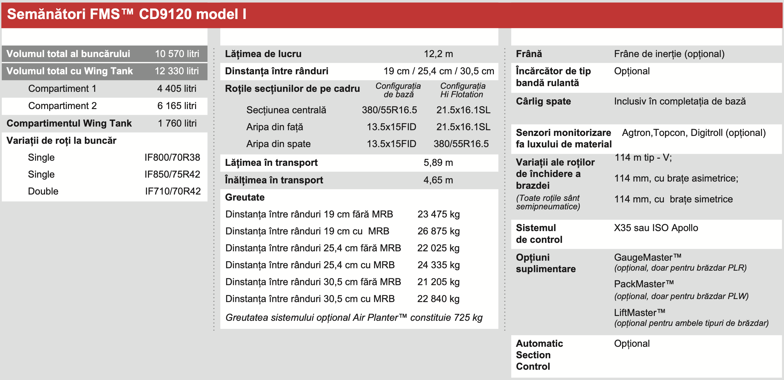• Posibilitatea de a fi dotat cu sistem MRB și Air PlanterTM.