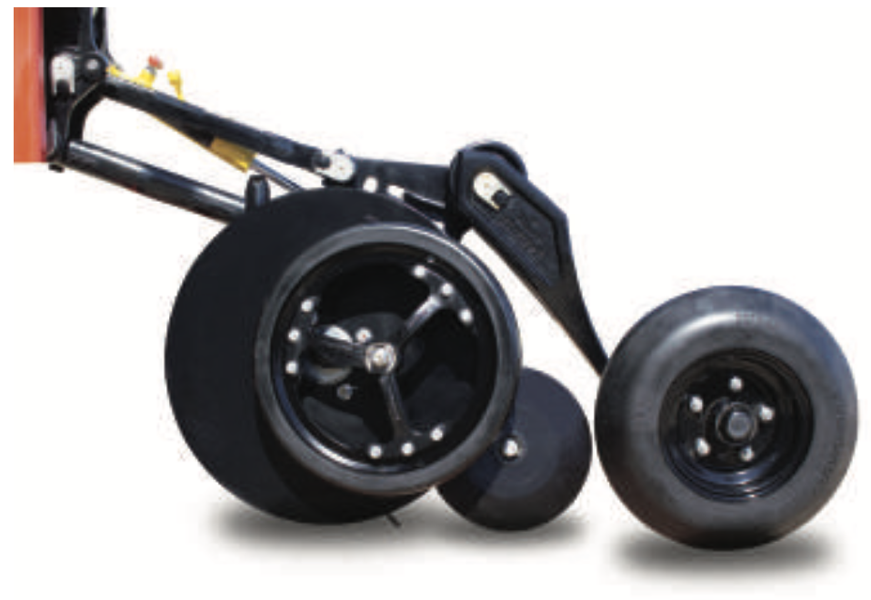 • La deschiderea agregatelor cu lățimea de lucru de 6 metri, secțiunile rabatabile formează o construcție solidă și uniformă. Agregatele cu lățimea de lucru de 8 metri pot fi echipate opțional cu roți suplimentare pe aripile cadrului, pentru o copiere mai precisă a conturului terenului.