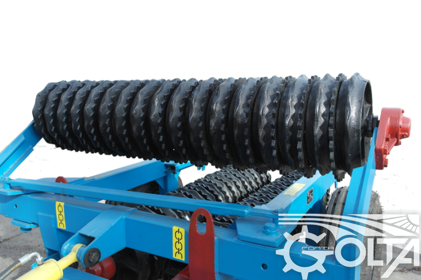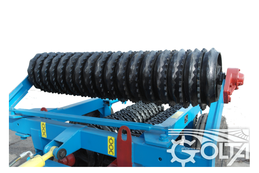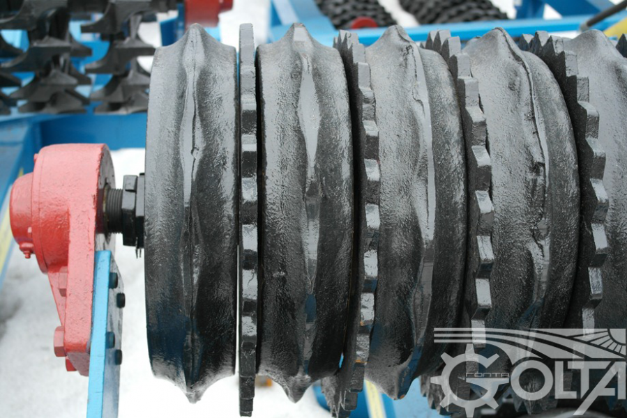 Tăvălugi de tasare inelari cu dinți KZK-6P - asigură o prelucrare eficientă a solului: - tasează, nivelează și compactează solul, rostogolirea patului de semințe după aplicarea îngrășământului și semințelor, conferind solului uniformitate, asigurând astfel răsărirea uniformă a răsadului.